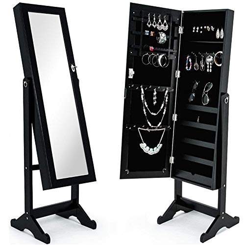 BAKAJI Genève Miroir à bijoux avec porte porte-objets, armoire à bijoux, noir