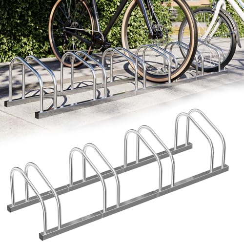 BAKAJI Support de vélo pour Sol ou Mur, Support de stationnement extérieur pour vélo en Acier avec matériel de Montage Inclus (4 Places)