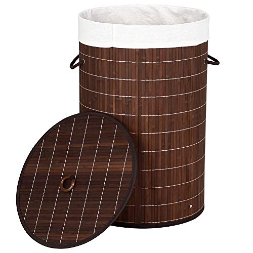Bakaji Panier à Linge Sale en Bois de Bambou et Tissu, Pliable, Peu encombrant, avec Couvercle et poignées, capacité 70 L, Dimensions 38 x 60 cm (Marron)