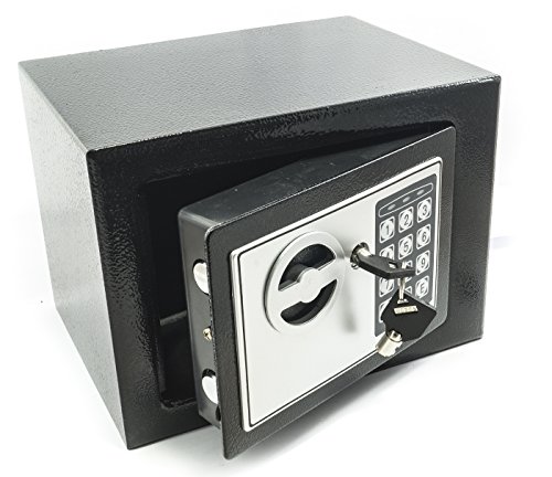 Bakaji Coffre-Fort Mural avec numérique Digital électronique 23 x 17 x 17 cm Sécurité Maison Hôtel Hôtel Safe + 4 Piles AA d'urgence et Touches Gris foncé