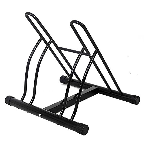 BAKAJI Support pour vélo 2 Places Multiple pour Sol et Parking extérieur pour vélo en Acier Noir avec matériel de Montage Inclus