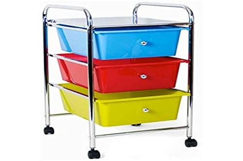 Bakaji Chariot Polyvalent Trolley Desserte de Rangements Structure En Métal Chromé 33 x 39 x 65 cm Avec 4 Roues Rotatives et 3 Tiroirs Multicolore Parfait Pour Salle de Bain Bureau Cuisine Salon de Beauté