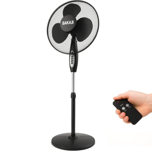 BAKAJI Ventilateur à colonne de puissance 45 W diamètre pale 40 cm 3 vitesses sélectionnables Hauteur réglable Oscillation horizontale et télécommande pour contrôle à distance (Noir)
