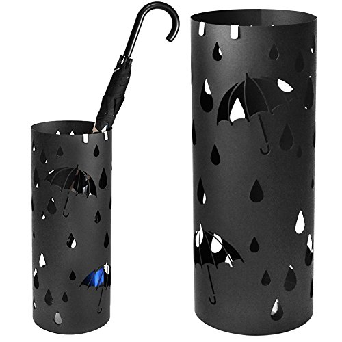 Bakaji BAK5B Porte-parapluies design en fer, forme ronde, couleur noir, avec trous décoratifs en forme de parapluies et de gouttes