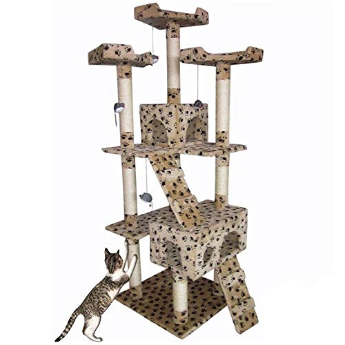 BAKAJI Arbre à Chat en sisal pour Chats, Chats, Chats, griffoirs, Hauteur 170 cm (Pat Beige)
