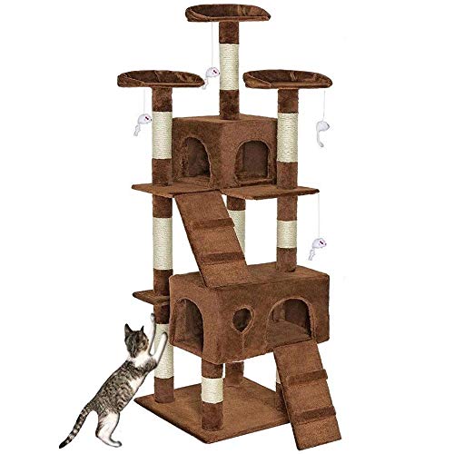 BAKAJI Arbre à Chat en sisal pour Chats, Chats, Chats, griffoirs, Hauteur 170 cm (Marron)