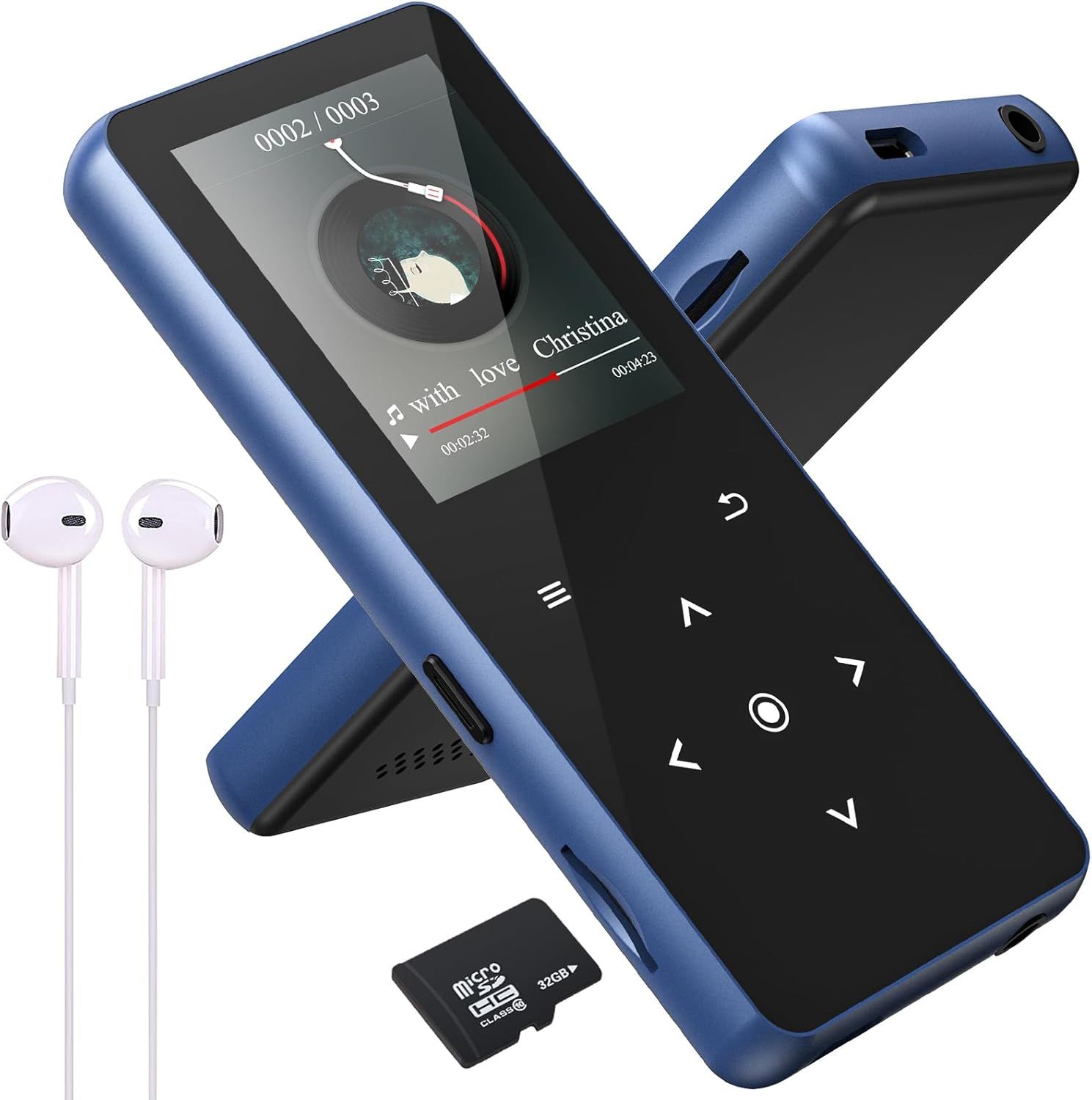 Lecteur MP3 32Go Bluetooth 5.0,Lecteur Musical sans Perte HiFi Baladeur Portable Haut-Parleur HD Intégré,Vidéo,Enregistrement Vocal,Radio FM,Livre électronique Prise (Bleu,32GB)
