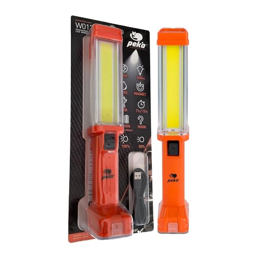 PEKA | Lampe LED Travail Baladeuse Rechargeable | Haute Puissance | Travail Basse Lumière | Pour Mécanicien | 10W 600 lm | 2 intensités | 2 Batteries Lithium | Fonction Batterie Portable | PEKA W012