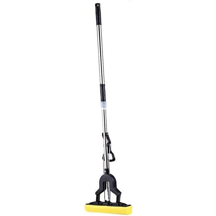 Balai éponge avec manche télescopique 102 à 125 cm - Balai serpillère en polypropylène et acier inoxydable PVA - Utilisation humide et sèche - Avec fonction d'essorage - Balai serpillère