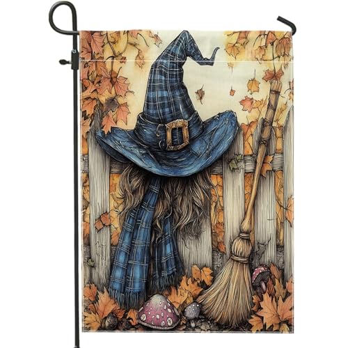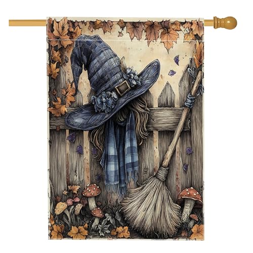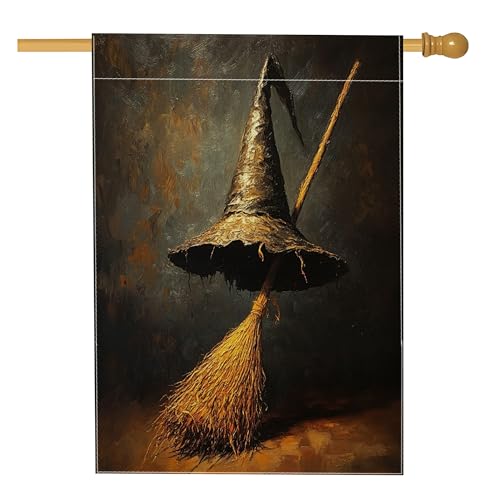 Chapeau de sorcière amusant pour Halloween, drapeaux de jardin, 30,5 x 45,7 cm, double face pour décoration extérieure, balai magique, clôture de ferme, drapeau en toile pour enfant, petit drapeau de