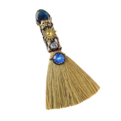LQQDREX Balai magique en cristal naturel, mini balai de sorcière, balai d'autel Wiccan en cristal, décoration de cérémonie magique, bâton Reiki fait à la main pour le nettoyage, la guérison, le