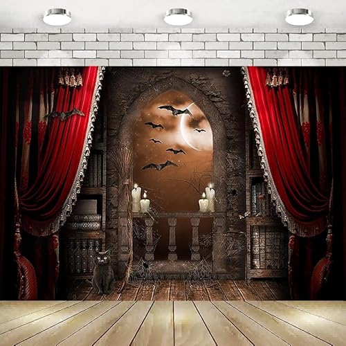 Halloween Photographie Toile de Fond Balai Magique Vampires château médiéval Fond fantasmagorique sorcière Chauves-Souris Milieu du siècle Vintage bannière 300 x 200