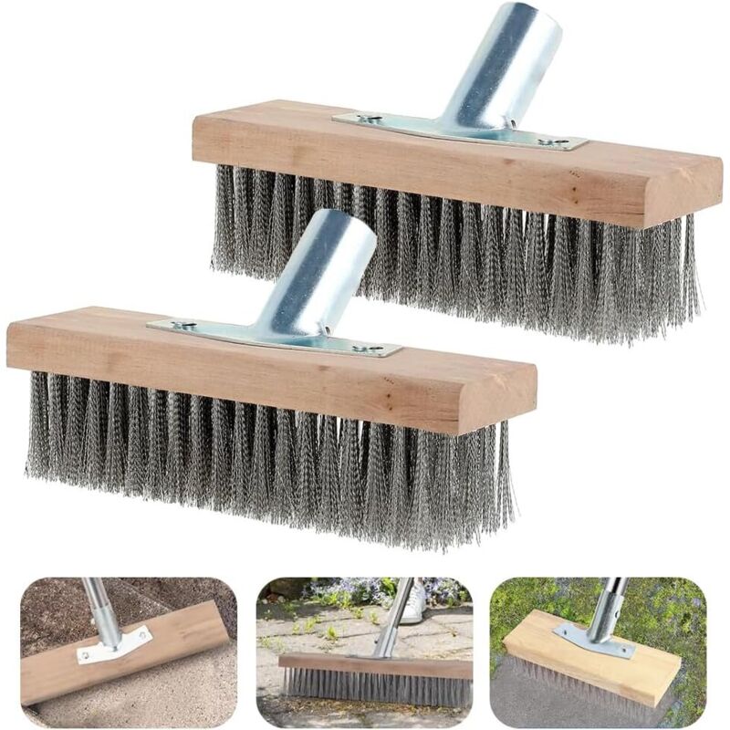 Applicable 2 Pièces Balai Métallique en Acier, Enlever Mauvaise Herbe Brosses à Joints en Acier Balai Exterieur pour éliminer l'herbe la Mousse Les