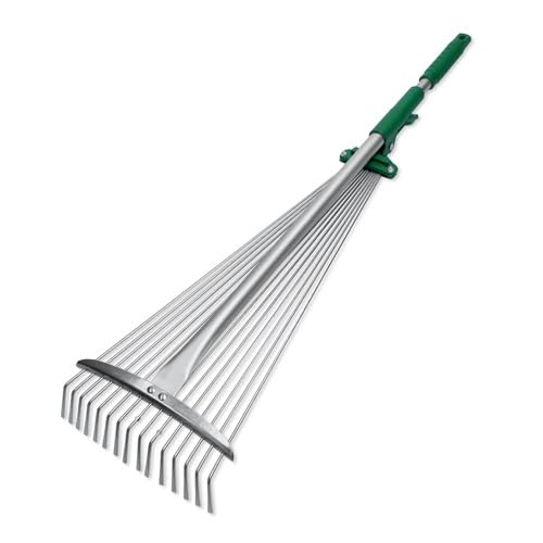 Balai métallique réglable - Modèle A201 - Tête de 15 dents - Fabriqué en acier galvanisé - Léger et maniable - Manche conique - Pour l'entretien du jardin - Bikain