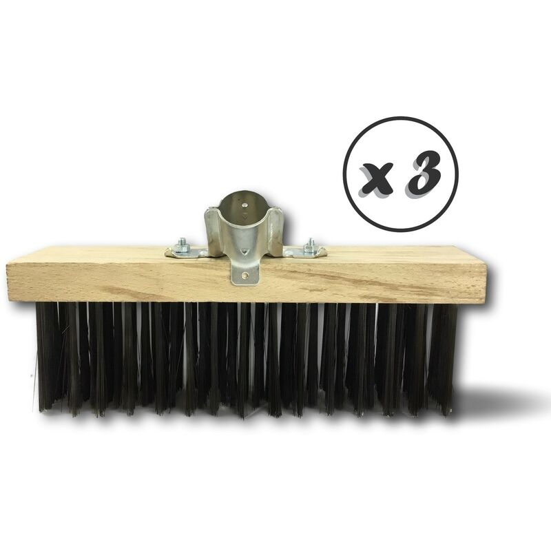 Kibros - Balai cantonnier métallique Garnissage acier rond noir Semelle bois - Quantité x 3 - Acier rond noir - Sans manche
