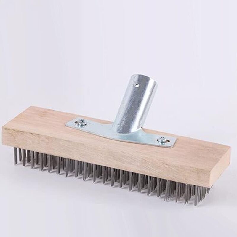 Brosse À Balai Métallique Portable, Brosse À Récurer Les Sols en Acier Inoxydable, Balai Métallique 30cm avec Prise pour Manche en Bois, pour Enlever La Mousse Et Les Algues sur La Terrasse