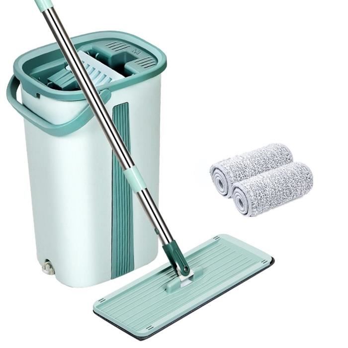 Serpillière Seau Set,Ensemble Balai Magique et Seau Auto Nettoyant à Double Compartiment Set, Balai Plat Rotatif à 360° -2 lingettes Microfibre