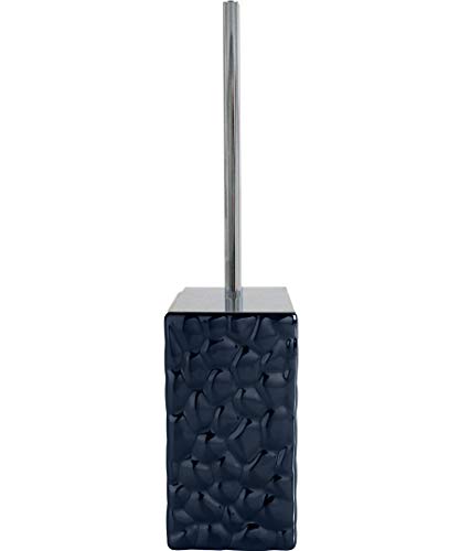 MSV - Brosse WC Porte-Balai Toilette Inagua - Ensemble WC à Poser en Polystyrène - Manche en Acier Inoxydable - Couleur Bleu Foncé - Tête de Brosse Échangeable