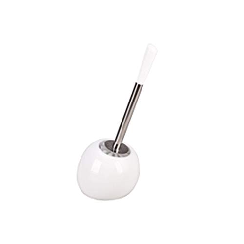 MSV - Brosse WC Porte-Balai Toilette Inagua - Ensemble WC à Poser en Polystyrène - Manche en Acier Inoxydable - Couleur Blanc - Tête de Brosse Échangeable