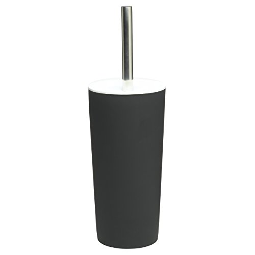 MSV - Brosse WC Porte-Balai Toilette Inagua - Ensemble WC à Poser en Polystyrène - Manche en Acier Inoxydable - Couleur Gris Foncé - Tête de Brosse Échangeable