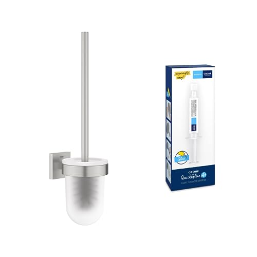 Lot de GROHE Start Cube Porte-Balai de WC (Montage Mural, Fixations Cachées, Platine de Fixation Incluse, Supersteel), 40977DC0 + GROHE Kit colle Quickglue A1, 41127000