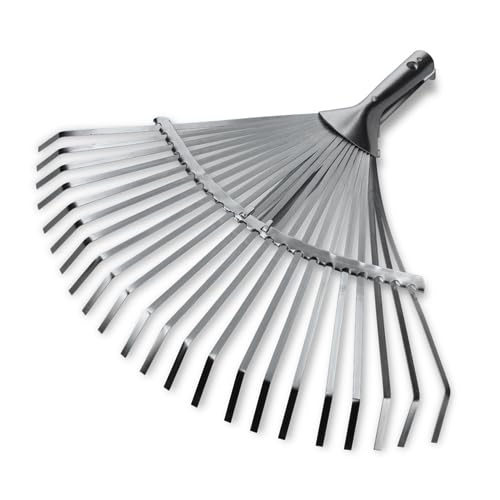 Mivos Balai à Gazon de Jardin en Acier - Petit Râteau à Main en Forme Éventail pour Ramasser Les Déchets de Jardin - 9 Élastique Dents - Outil de Jardin pour Nettoyer- Largeur 12 cm
