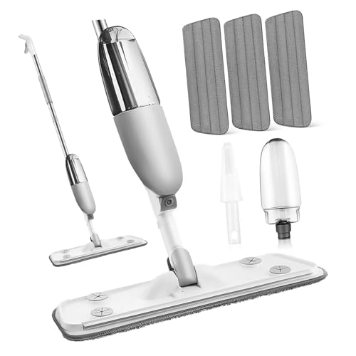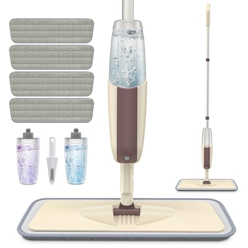 mumisuto Balais Serpillère Vaporisateur, Microfibre Balai Pulvérisateur Spray Mop avec 4 Tampons de Rechange, Balai Pulvérisateur pour la Maison, la Cuisine, Le Bois Dur, Le Stratifié, Le Bois