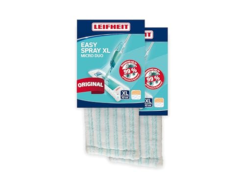 Leifheit Lot de 2 Housses Micro Duo pour Balai pulvérisateur Easy Spray XL, Housse de Rechange Microfibres, serpillère pour Balai à Plat nettoyante et absorbante à Double Fibre, Tous Types de sols