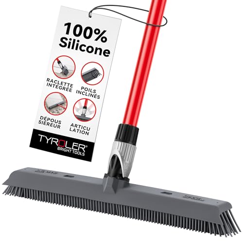 Tyroler Balai Silicone & Raclette Sol | Tête De 41 cm Balai Bross Poils Animaux | Manche Anti-Rouille en 4 Parties de 140 cm pour Balais en Silicone Professionnel | Balais Nettoyer Sol