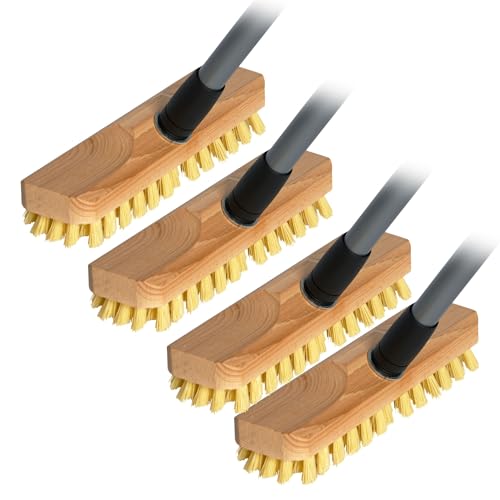Novaliv Lot de 4 brosses à récurer en bois avec poils Union et tige en bois | Balai avec filetage | Brosse à récurer | Brosse de sol | Pour balcon, terrasse, jardin, intérieur et extérieur