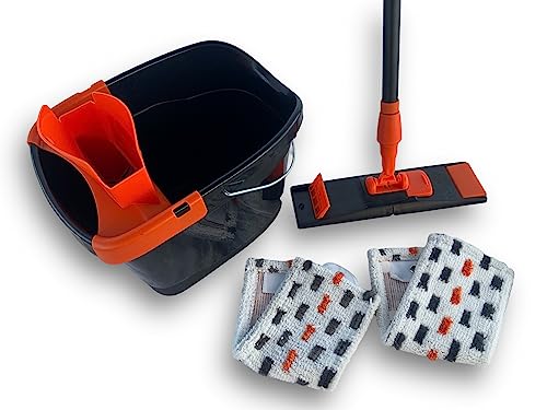 Balai plat | Serpillère à presser et seau | Balai avec essoreur, chambre, 360 degrés, peu encombrant, balai avec seau, balai pour petits espaces, balai à sol plat et seau pour un nettoyage en