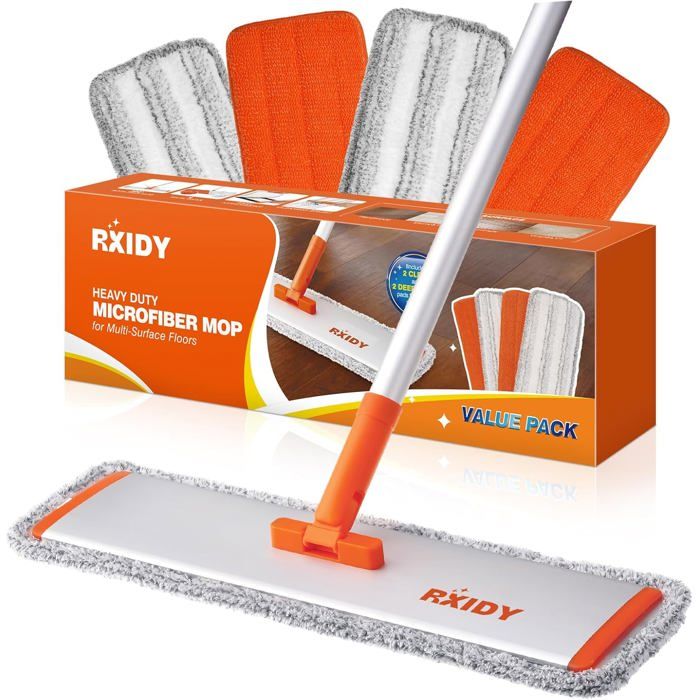 RXIDY Balai Serpillère Professionnel Balais Nettoyer Sol avec 4 Tampons Lavables Réutilisables Serpillere Balai pour Le Bois Dur, Le Stratifié, Le Bois