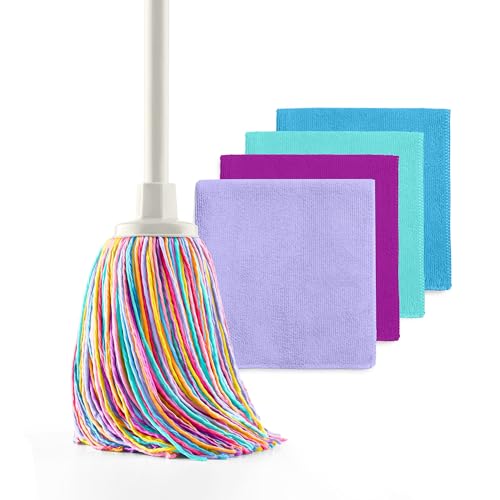 Happy Rainbow - Balai serpillère avec 4 Chiffons en Microfibre recyclée Set de Nettoyage Durable pour la Maison et Tous Types de Surfaces Super absorbantes et résistantes Edition : Sunrise