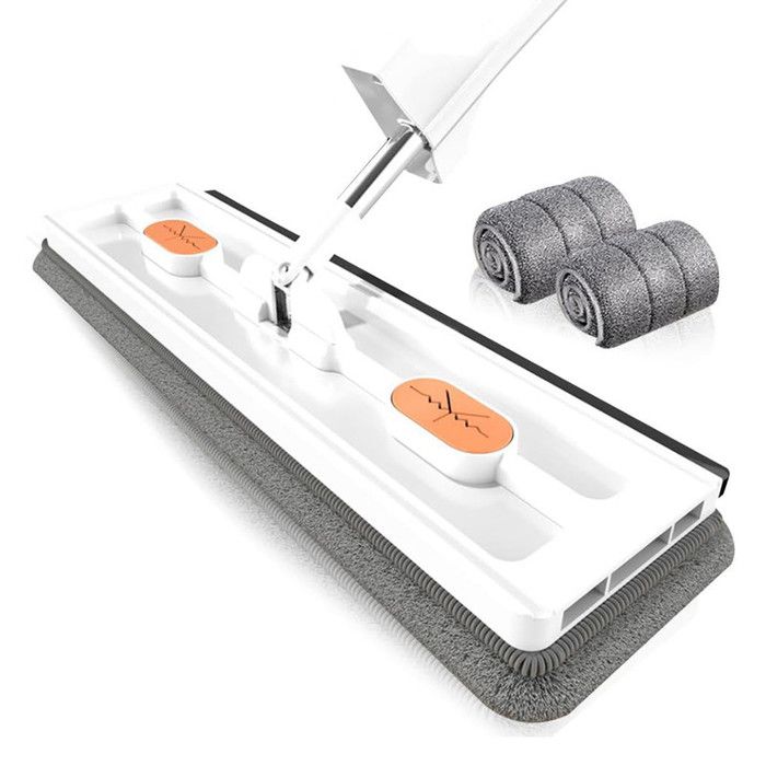 Balai Serpillere Auto-Essorage Sans Seau - Mop Plat Microfibre - Rotation 360° - 2 Lingettes Incluses - Nettoyage Maison Facile