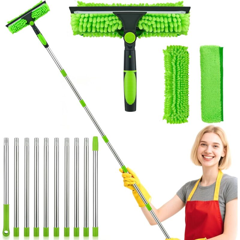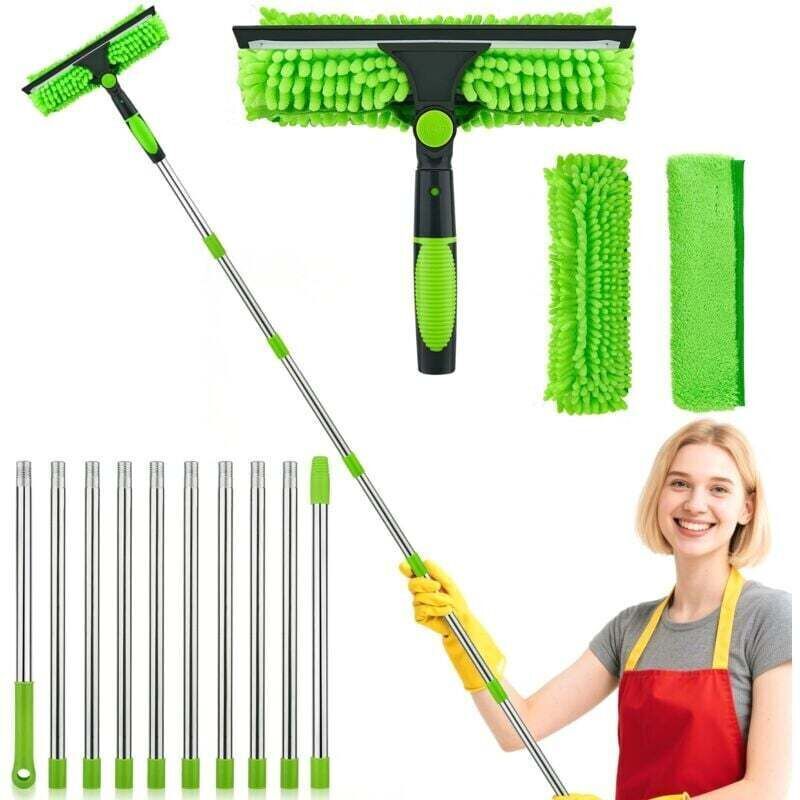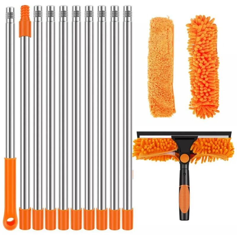 4,5m RéGlable Lave Vitre Telescopique, Raclette Vitre Telescopique avec Balai en Silicone Et Brosse en Microfibre, Professionnel Kit Nettoyage Vitre