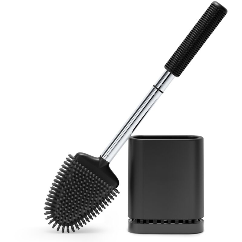 HZBODA Brosse Toilettes WC Silicone Noir avec Support à Séchage Rapide en Acier Inoxydable Incluant 2 Têtes De Brosse Balai Toilette WC Silicone