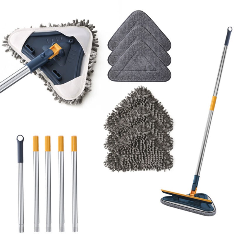 Balai rotatif triangulaire télescopique rotatif à 360 degrés pour sol, plafond, fenêtre, mur