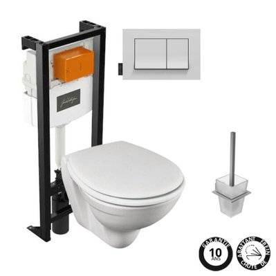 Jacob Delafon Pack WC suspendu sans bride JACOB DELAFON Struktura + abattant plaque bâti Porte-balai Eo carré