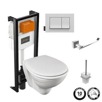Jacob Delafon Pack WC suspendu sans bride JACOB DELAFON Struktura + abattant plaque bâti porte-rouleau et porte-balai