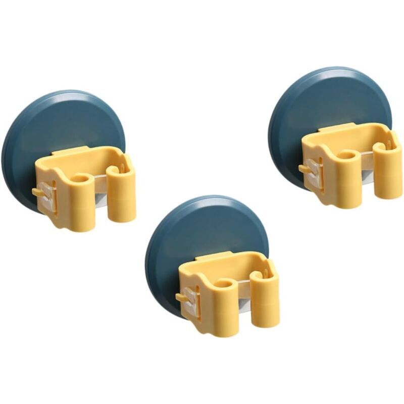Lot de 3 Porte-balais Mural Ventouse Antidérapante, Pinces pour Balai à Franges Bleu et Jaune, Support sans Perçage pour Salle de Bain, la Cuisine et
