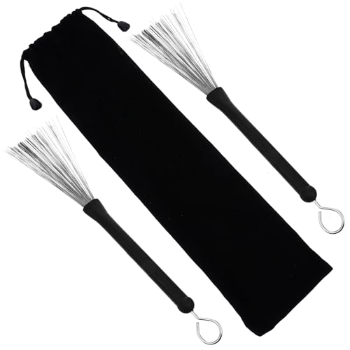 STOBAZA Brosse à Tambour en Acier Inoxydable 2 Pièces Balais Métalliques pour Batterie Jazz Accessoires Percussion Main Balais Spéciaux pour Instrument de Percussion Ensemble de