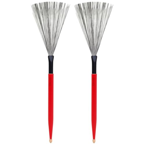 Healeved Baguettes de Batterie en Érable Rouge 1 Paire, Brosses Métalliques Spéciales pour Tambour Jazz, Balais pour Batterie Manche en Bois, Accessoires Fiables pour Percussion