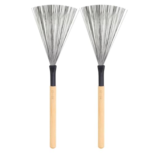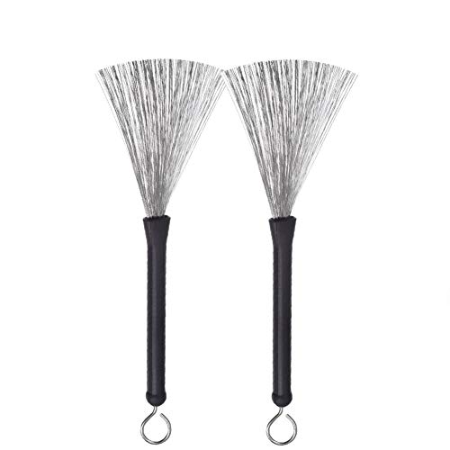 CVUTOVO Lot de 2 Balais Métalliques pour Batterie Jazz en Acier Inoxydable Fil D'acier, Accessoire Professionnel pour Tambour, Brosse de Percussion Portable pour Musiciens et Groupes