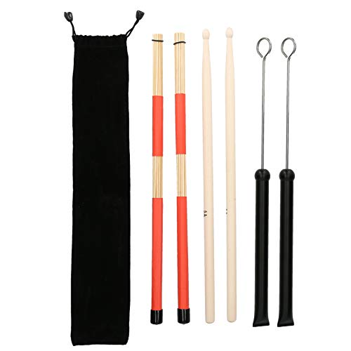 WEKADRIN Kit de Baguettes 5A Épaisses et Balais Métalliques Extensibles pour Batterie – Ensemble Percussion Paquet de Transport – Accessoires Professionnels pour Batterie Acoustique et