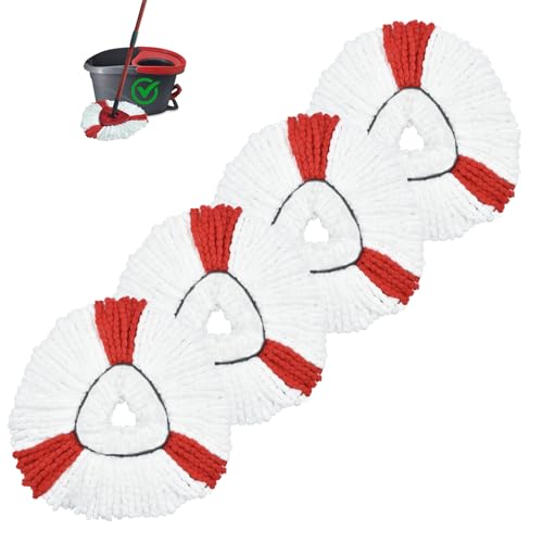 Lot de 4 têtes de Rechange compatibles avec Les balais rotatifs Vileda EasyWring - Recharges de tête rotative en Microfibre