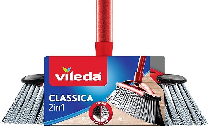 Vileda Classique 2 IN 1 Balais avec Poignée, Fibres pour Poudre Et Cheveux,