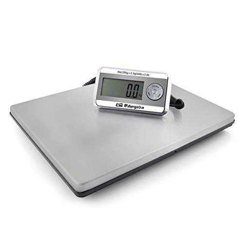 Orbegozo Pc 5500 - Balance de cuisine industrielle, capacité maximale de 200 kg, surface en acier inoxydable (39 x 31 cm), fonction tare, fonctionne sur piles et adaptateur électrique
