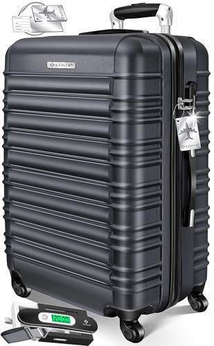 Kesser® Valise rigide de voyage, avec balance à bagages + étiquette de bagage, valise à roulettes, serrure à combinaison, 4 roues, plastique ABS, poignée télescopique, anthracite, 66cm - 84L