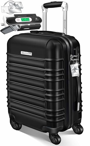 Kesser® Valise rigide de voyage, avec balance à bagages + étiquette de bagage, valise à roulettes, serrure à combinaison, 4 roues, plastique ABS, poignée télescopique, Noir , Equipaje de mano 55cm -