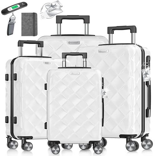 KESSER® Lot de 4 valises de voyage en ABS rigides avec serrure à combinaison, balance à bagages et portefeuille de voyage, roulettes 360°